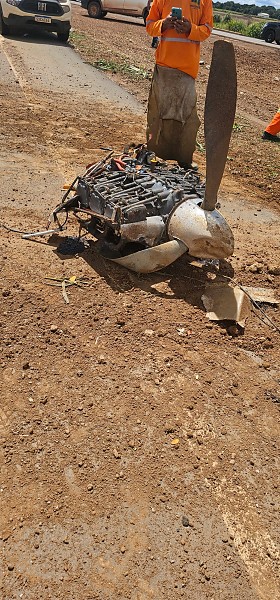Com o impacto da queda, a hélice da aeronave se partiu e foi arremessada a vários metros de distância, evidenciando a força da colisão. Parte da estrutura do avião ficou bastante danificada.