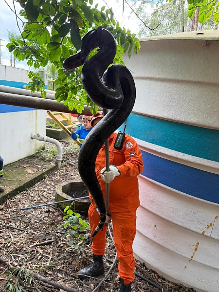 A 6ª Companhia de Bombeiros Militar do Estado de Mato Grosso (CBM-MT) realizou, na tarde desta segunda-feira (23), o resgate de uma serpente da espécie jibóia em área considerada de risco, em Primavera do Leste.
