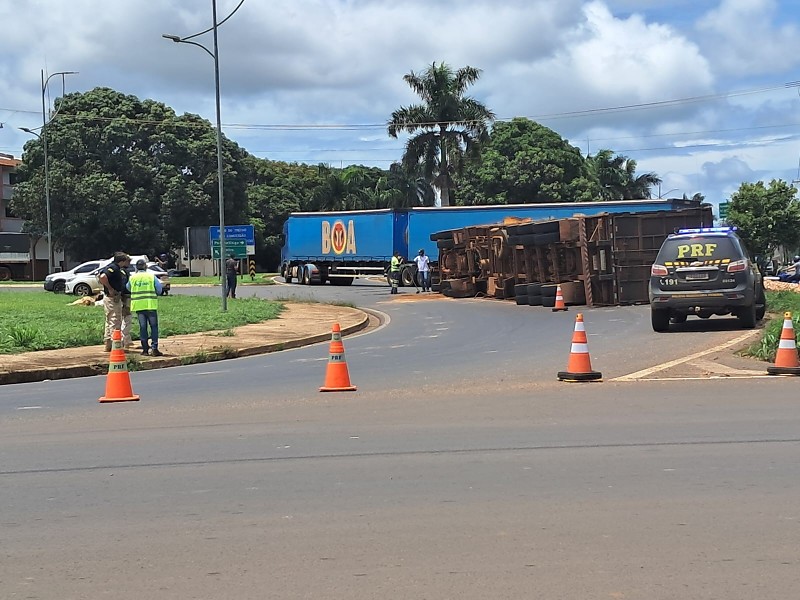 Um acidente registrado na manhã desta quinta-feira, 11, provocou a interdição total do acesso entre a BR-070 e a MT-130, na rotatória que dá entrada a Primavera do Leste. Uma carreta bitrem, carregada com cavacos de madeira, tombou enquanto o motorista tentava contornar o trevo.