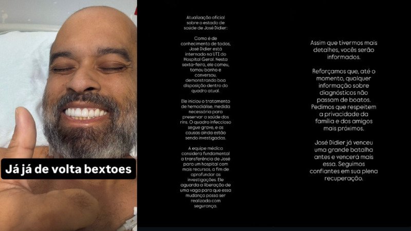 "José Didier já venceu uma grande batalha antes e vencerá mais essa. Seguimos confiante em sua recuperação", diz trecho do comunicado.