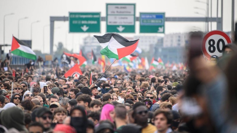Em toda a Itália, um país com uma tradição pacifista, milhares de pessoas se reuniram para marchas e flash mobs, de Turim e Trento, no norte, e de Bari a Palermo, no sul, segundo imagens divulgadas pela imprensa local. As mobilizações "mostram a humanidade e a determinação de pessoas honestas que querem o fim do genocídio que governos e Estados fingem não ver ou até mesmo são cúmplices", enfatizou Maurizio Landini, secretário-geral da CGIL, o principal sindicato da Itália, na Rádio Anch'io.