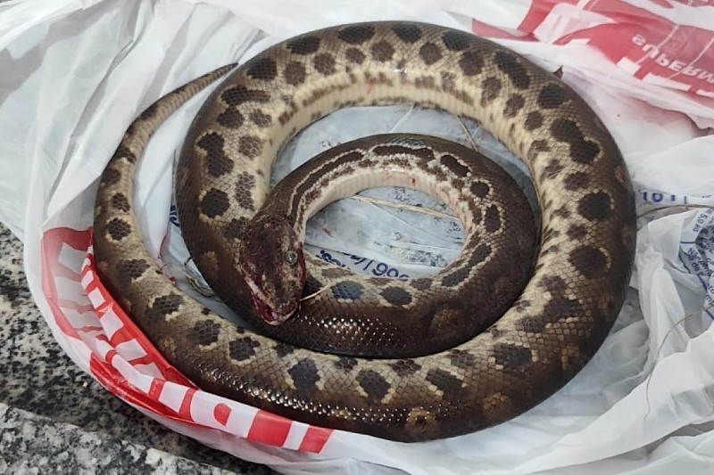 Os bombeiros foram acionados e atenderam à ocorrência. O homem foi encaminhado para um hospital da região, mas está bem, visto que a sucuri não é venenosa.