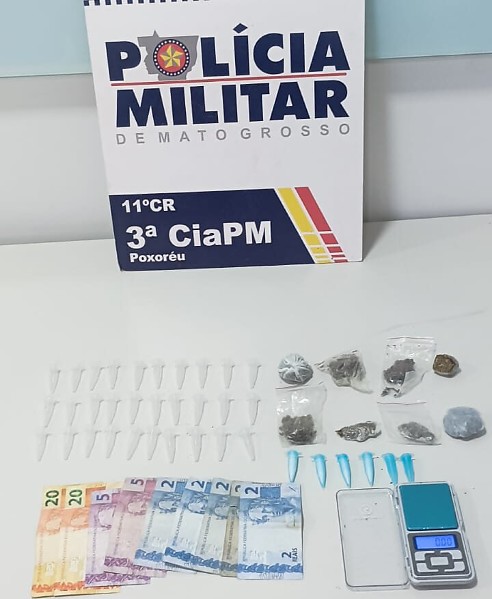 Policiais militares da 3ª Companhia de Poxoréo, detiveram um jovem de 18 anos de idade que, conforme denúncia, estaria comercializando maconha e cocaína no bairro Santa Luzia.