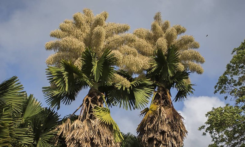 Os visitantes do Aterro do Flamengo, no Rio de Janeiro, podem testemunhar um evento raro protagonizado pela natureza neste mês: as palmeiras Talipot – espécie que só dá flores uma vez durante sua vida – estão florescendo.