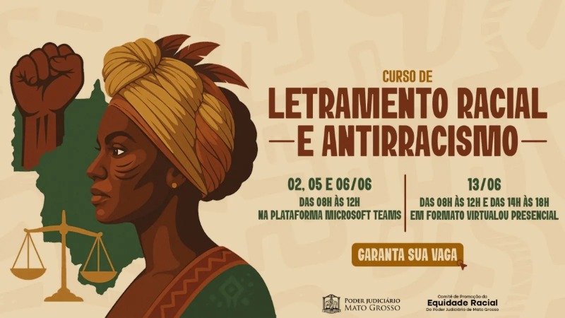 O Poder Judiciário de Mato Grosso inicia nesta terça-feira (25) a 2ª edição do curso de Letramento Racial e Antirracismo. As inscrições seguem abertas até o início da formação, que será realizada em formato virtual pela plataforma Microsoft Teams.