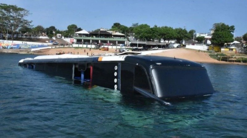 Segundo a Secretaria de Segurança Pública, o ônibus segue submerso no rio, aguardando remoção pela empresa proprietária.