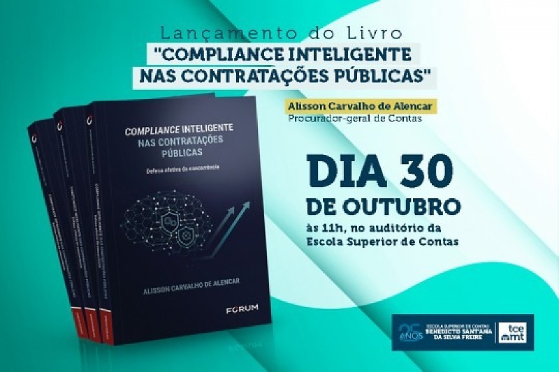 O procurador-geral de Contas, Alisson Carvalho de Alencar, lança, às 11h da próxima quinta-feira (30), o livro “Compliance Inteligente nas Contratações Públicas – defesa efetiva da concorrência”. O evento será realizado no auditório da Escola Superior de Contas do Tribunal de Contas de Mato Grosso (TCE-MT).
