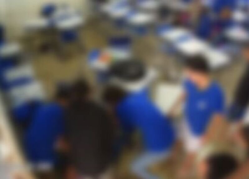 A agressão foi registrada em vídeo por câmeras de segurança da escola. Nas imagens é possível ver quando um adolescente atinge o outro com socos e cadeiradas.