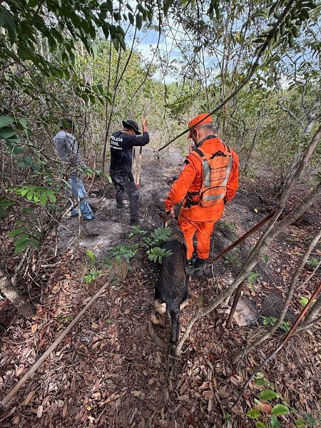 Para o atendimento, o CBMMT mobilizou uma equipe especializada em buscas terrestres, com o emprego de cão de busca, técnica utilizada em operações de localização de pessoas em ambientes de difícil acesso. A área indicada pela investigação passou por varredura minuciosa e, durante os trabalhos, o cão sinalizou um ponto específico no terreno.