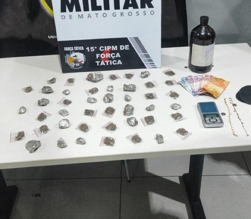 A suspeita admitiu a prática e indicou que havia mais drogas em sua residência. No imóvel, os militares encontraram outras 43 porções de maconha, uma lata de vidro com substância conhecida como "loló", materiais para preparo e R$ 69 em dinheiro. Ela foi encaminhada à Central de Flagrantes.