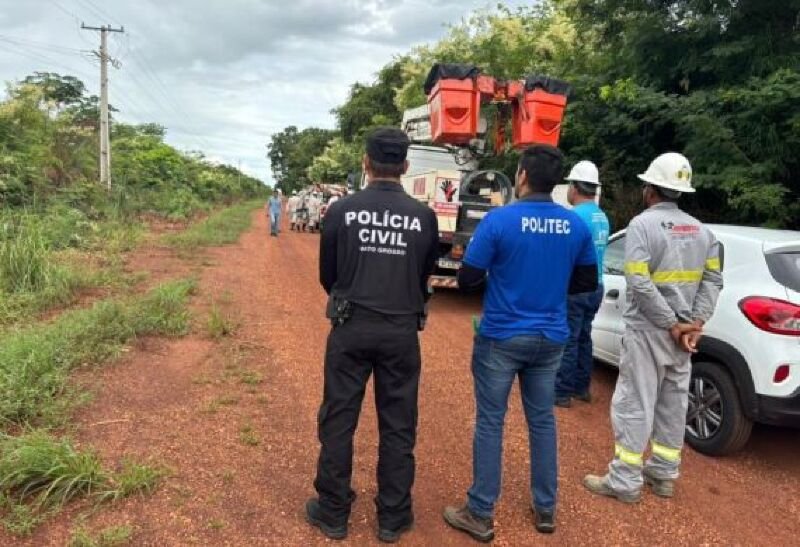 No local, a equipe policial e a Perícia Oficial e Identificação Técnica (Politec) constataram o desvio na rede de energia sem autorização e ausência de relógio de medição.