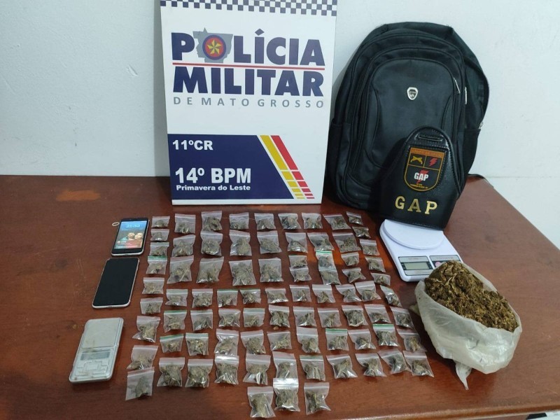 Em continuidade às ações da Operação Tolerância Zero, que tem como foco o combate às facções criminosas e ao tráfico de drogas no formato “delivery”, a equipe do Grupo de Apoio (GAP) do 14º Batalhão da Polícia Militar realizou uma importante apreensão na MT-130, em Primavera do Leste, nesta terça-feira, 07.
