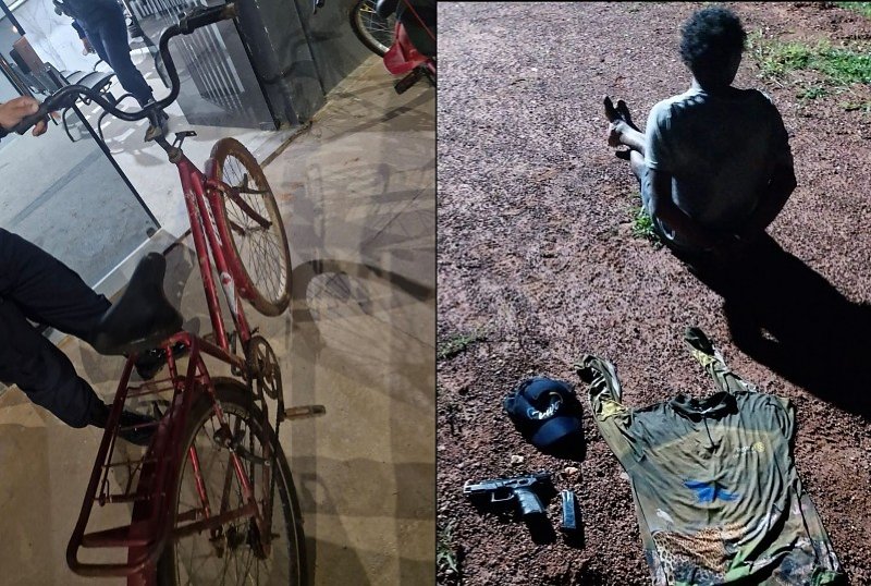 A arma e a bicicleta usadas no crime foram apreendidas. O suspeito foi encaminhado à delegacia para as providências legais.
