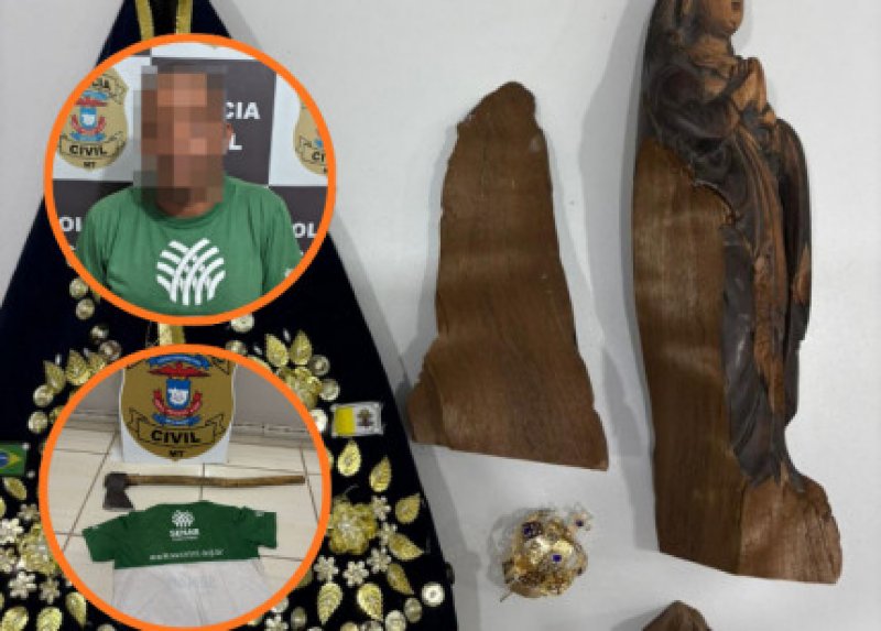 Um homem de 47 anos, cuja identidade não foi revelada, foi preso ao dar uma machadada em imagem de Nossa Senhora Aparecida, em Jauru (409 km de Cuiabá), nessa segunda-feira (9). O ato criminoso ocorreu no dia 7 de março. Logo que o fato foi comunicado à Polícia Civil, foram iniciadas diligências investigativas com intuito de identificar e autuar o suspeito. O crime foi registrado na cidade que sediará beatificação do padre Nazareno Lanciotti morto à tiros.