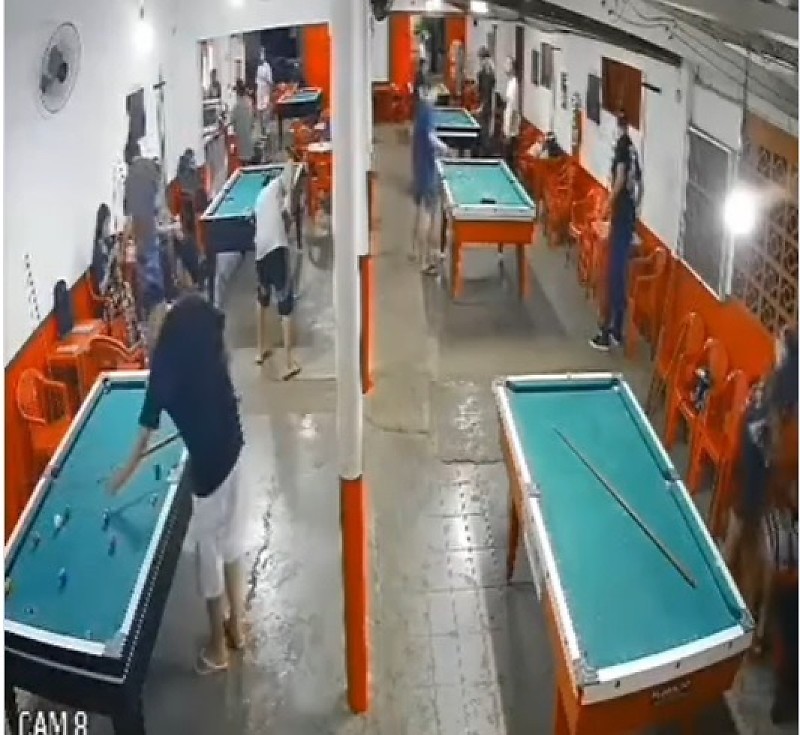 Um homem foi brutalmente esfaqueado enquanto estava sentado próximo a uma mesa de sinuca no interior do estabelecimento.