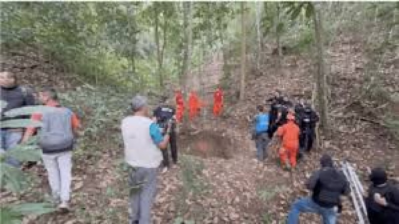 Durante as buscas em área de mata, as equipes encontraram restos mortais e um poço que seria usado para a desova de corpos.