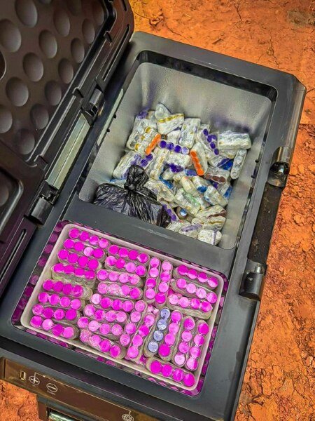 Durante a vistoria, os policiais encontraram os produtos sem documentação fiscal e sem autorização da Anvisa, incluindo Oximetolona, Enantato de Testosterona, Drostanolona Propionato, Nandrolona Fenilpropionato, Metenolona Enantato, Decanoato de Nandrolona, Cloridrato de Clembuterol e 1.200 unidades de Tirzepatida (“caneta emagrecedora”).