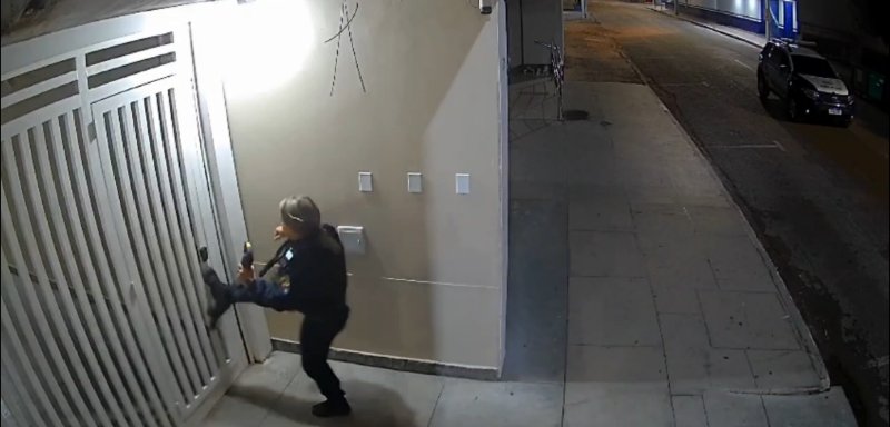Uma câmera de segurança captou o momento exato em que a polícia chega à casa de uma mulher que gritava por socorro após ser agredida e ameaçada pelo ex-namorado em Barra do Garças (520km de Cuiabá). A vítima ficou trancada em um banheiro na madrugada desta quinta-feira (30).