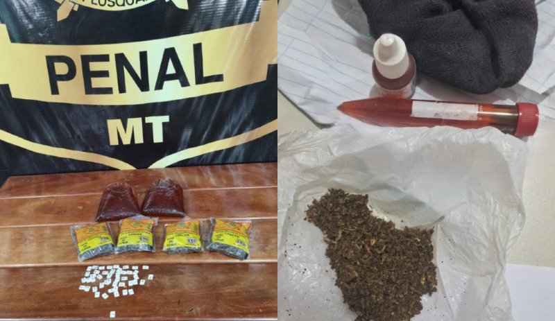 Em Jaciara, uma visitante foi detida ao tentar entrar na unidade com uma porção de maconha e um vidro de pimenta em conserva. Os materiais foram apreendidos e as pessoas encaminhadas à Delegacia da Polícia Civil para os procedimentos legais.
