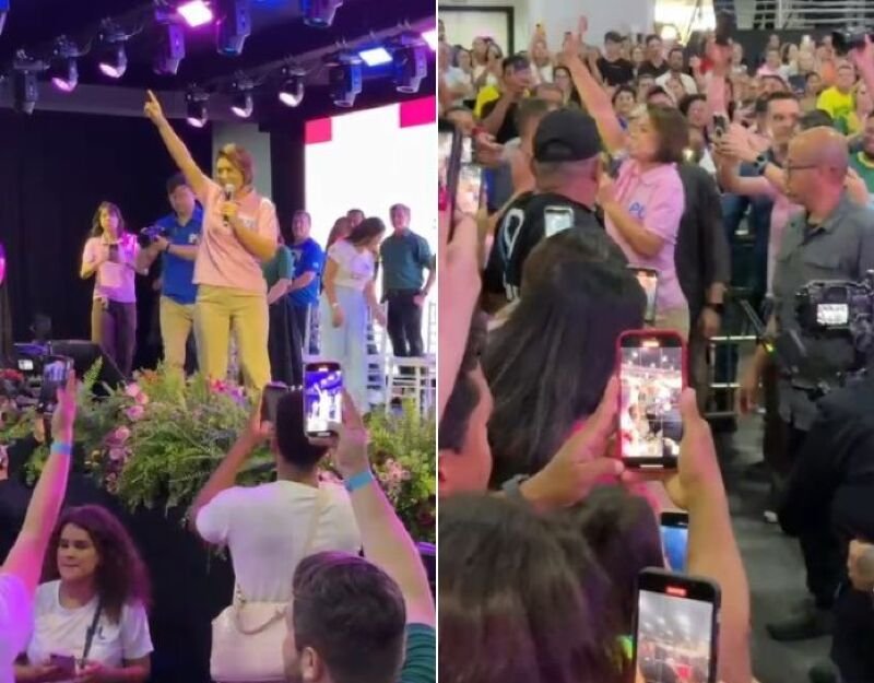 De volta ao palco, ela mencionou os bolsonaristas presentes. Os filiados ao PL com mandato compareceu em peso. Os deputados federais Coronel Fernanda e José Medeiros estavam no escalão da frente. Além deles, participaram o senador Wellington Fagundes (PL), os deputados estaduais Gilberto Cattani e Elizeu Nascimento, a prefeita de Várzea Grande Flávia Moretti e o presidente estadual do partido, Ananias Filho.