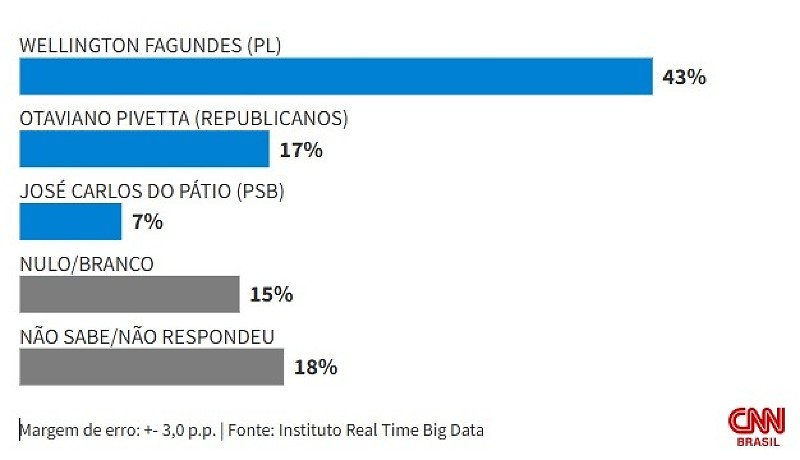 No primeiro deles, Fagundes chega a 43%, contra 17% do atual vice-governador e ex-prefeito de Lucas do Rio Verde, Otaviano Pivetta (Republicanos). Já o ex-prefeito de Rondonópolis José Carlos do Pátio (PSB) tem 7%.