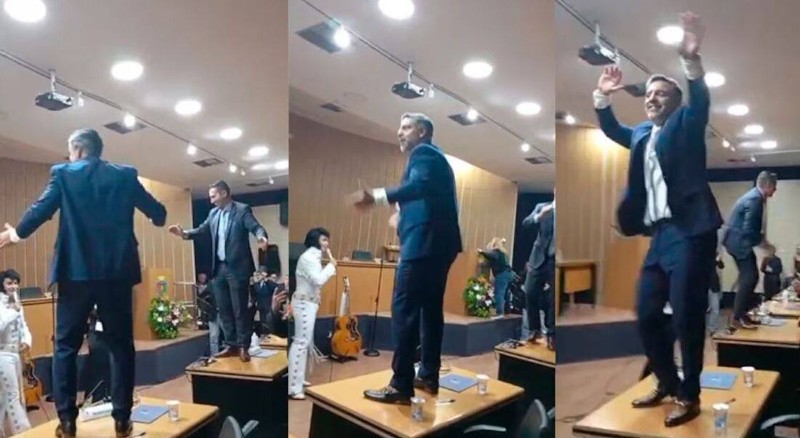 Dois vereadores de São Caetano do Sul, na Grande São Paulo, foram filmados dançando sobre mesas no plenário após o encerramento da sessão solene em homenagem ao Dia da Pessoa Idosa, na quinta-feira passada, dia 2.